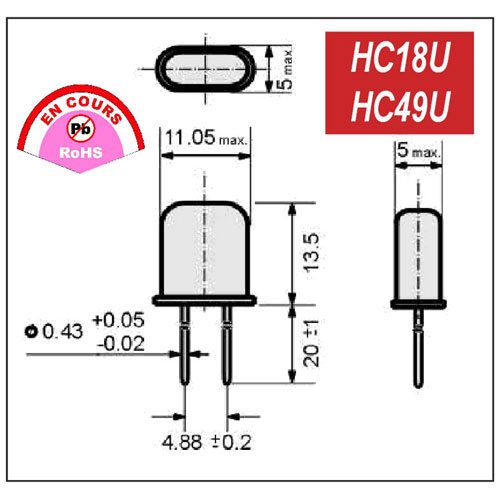 - Stabilité en température : 30 ppm de - 10 à + 70°C