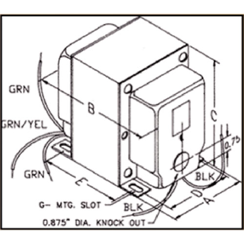 Modèle: 1645 Audio watts (RMS): 35 Impédance primaire: 5,000 C.T. Max D.C. par canal: 128 mA Impédance secondaire: 4/8/16,70 Dimensions (pouces) A: 2.50 B: 3.75 C: 3.06 D: 2.00 E : 2.69 G slot: .203x.38 Poids (lbs): 4.5