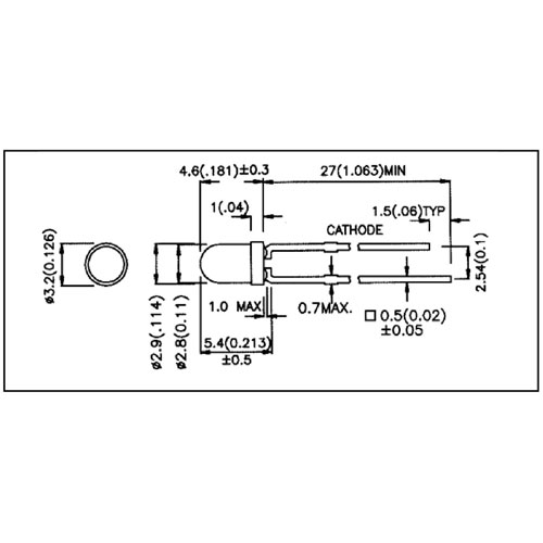 Led haute luminosité de marque Kingbright- Référence L-7104PBC-G- Diamètre 3 mm- Pas 2,54 mm- Boitier transparent- Matériau InGaN- Couleur bleue- Longueur d'onde 470 nm- Intensité lumineuse typique, pour 20 mA : 700 mcd- Angle de diffusion : 40°- Accéder à la documentation - Lien vers le site Kingbright