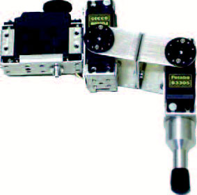 Patte 3° (avec servo FUTABA 6kg.cm) Réaliser des robots à pattes facilement: Hexapode, quadripède, etc... Livré avec pièces métalliques, visserie et accessoires.
