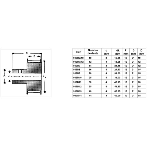 Cette poulie crantée est adaptée aux courroies crantées MFA 9.8mmCaractéristiques techniques- Alésage 4mm- Serrage par vis sans tête (fournie)- Nombre de dents : 25- Diamètre : 39mm