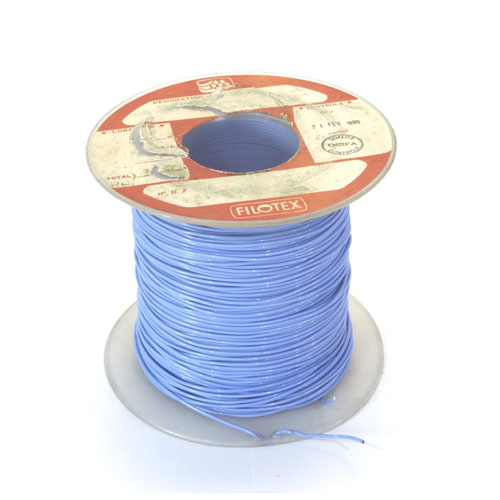 Fil de câblage multibrins 0,34mm²,AWG20.Diam. ext. 1,37mm/600V.BLEU.Isolation PTFE -55 +200°C/600V.Fab.:FILOTEX,type:KZ05-06 CCQ.Rouleau de 250 mètres.