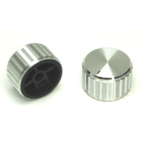 Bouton,calotte métal,avec repère.Axe 6 mm,serrage vis.Diam.:32 x 19mm.