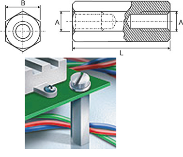Entretoise métal taraudée Femelle / Femelle Dimensions :- Côte A : M3- Côte B : 5.5mm- Côte L : 20mm