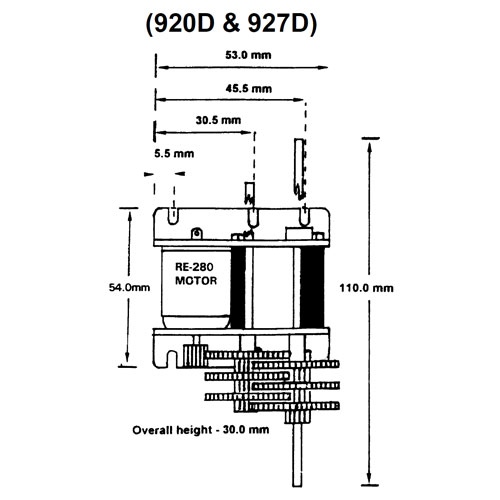 - Plage d’alimentation : 1,5 à 4,5 V - 3500 tr/min ( 0,08 A ) à 1,5 V constant- 7000 tr/min ( 0,12 A ) à 3 V constant - La vitesse de rotation peut être réduite de : 9, 27, 81, 243, 729 ou 2187 fois.