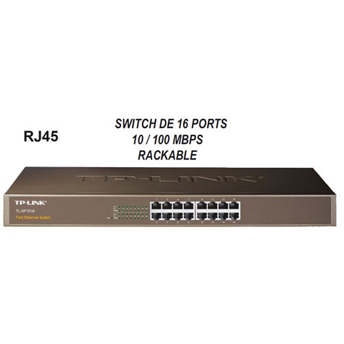 - Compatible avec les standards IEEE 802.3, IEEE 802.3u - 16 ports RJ45 10/100Mbps Auto-Negotiation et Auto-MDIX - Supporte le controle de Flux IEEE 802.3x - Voyants LED témoins d'alimentation, de Liaison et d'activité - Boitier metallique largeur 13'' - Alimentation interne 100-240V~ 50-60Hz